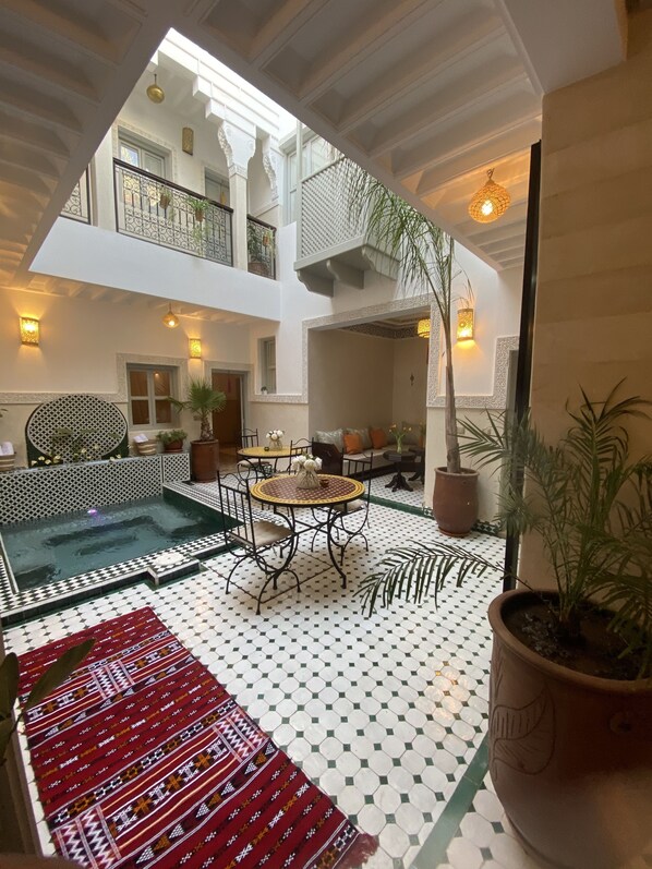 Travelers find serenity at Riad Magnolia Blue with both indoor and outdoor pools creating a peaceful sanctuary just steps from the energy of Jemaa el-Fnaa