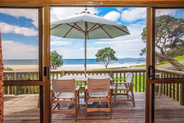 Sit back, relax and listen to the surf directly in front of the property. The second story deck provides stunning views of Sandy Bay and the famous Poor Knights Islands, making it a great spot for sunbathing and watching the surfers.