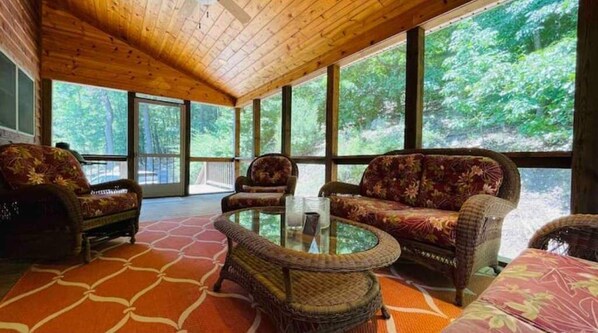 Escape city life at Mountain View, a West Virginia vacation home with 2,800 sqft of indoor and outdoor space. Enjoy modern conveniences like a gourmet kitchen, large screened-in patio with Big Green Egg smoker grill, and super-fast fibre optic WiFi.