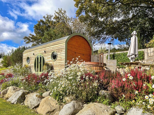 Bedroom: Galleried, Kingsize (5ft) Bed. Electric central heating, electricity, bed linen, towels, Wi-Fi and logs for hot tub included. Dressing gown and welcome pack provided. Terrace with sitting-out area, garden furniture, barbecue and firepit (logs £15 per large bag). Wood fired hot tub for 4 (private). Residents’ car park (not allocated). No smoking.. Freedom Fields pods really are delightful and offer guests that little bit of luxury in the stunning Ayrshire countryside. These two pods are set apart from each other to offer guests both privacy and seclusion and are beautifully designed. The pods have large luxurious king size beds on the mezzanine level and an open plan living/dining/kitchen space on the ground floor with the added luxury of an electric wood burner, just perfect for that romantic getaway. Outside the pods have their very own wood fired hot tub where you can sit and relax being disturbed by nothing but the gently crackling fire and the wildlife. With a barbecue and firepit you can spend a lazy evening marvelling at the starry dark skies. The views from these beautiful rural properties are spectacular at any time of year, the pods are peacefully located within walking distance of the pretty conservation village of Straiton with coffee shop, pub, and local village store, voted one of the ten ’Best Villages in Scotland’, and featured in the book ’The Most Beautiful Villages of Scotland’.