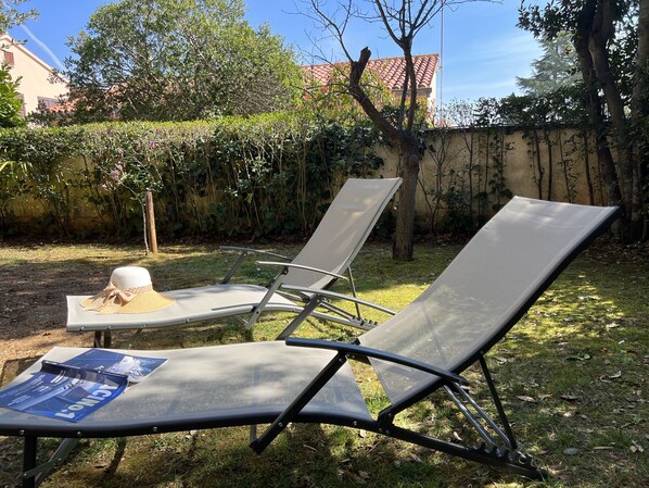 Apartment TOP LOCATION with garden view, BBQ, parking lot only 150m from the sea