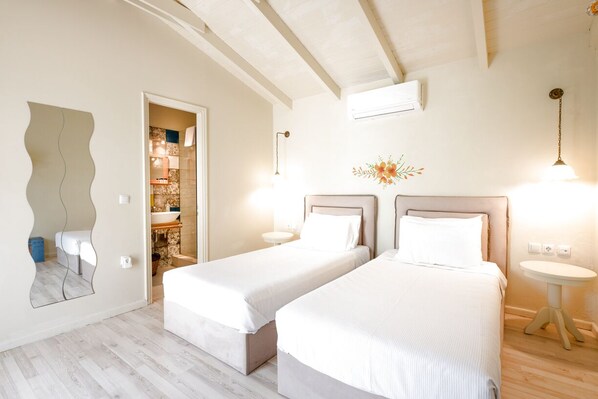 In the heart of picturesque Spartochori village, Meganisi, this stylish stone studio offers a cozy retreat for two. Enjoy a comfortable king-size bed, ensuite shower room and small kitchenette. Relax by the shared pool or at your private dining table just outside.