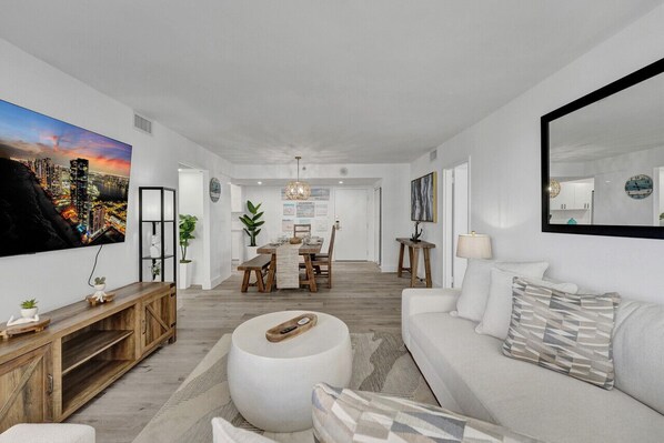 Our unit offers a cozy and stylish living space, where you can gather with your loved ones, plan your adventures, or simply unwind and watch your favorite shows on the large flat-screen TV.