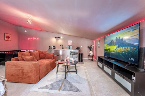 Secret room (sauna jaccuzi) provides everything you need. Guests can connect to in-room WiFi.