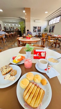 HOTEL OSCAR GOLD in central Montes Claros Centro offers a breakfast buffet, outdoor pool, inviting restaurant, laundry facilities, and free WiFi, ensuring guests stay connected while exploring nearby attractions.