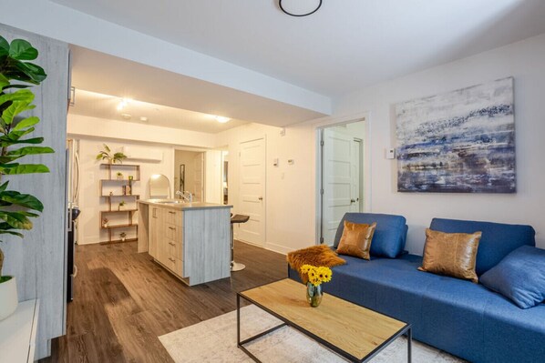 Stay steps from the city’s best in this spacious 4-bedroom apartment located in the lively center of downtown Montreal, just a 9-minute walk from Lucien-L`Allier Metro station. Designed for groups and families, this unit features a functional layout, Smart HD TV with streaming, and in-unit washer & dryer, offering all the essentials for a comfortable and convenient stay.