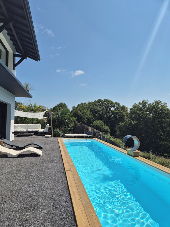 Le jardin est un véritable havre de paix, avec une vue imprenable sur les environs. Nous avons adoré prendre nos petits déjeuners sur la terrasse en profitant du calme et de la nature environnante. Les enfants ont également adoré la piscine, qui est sécurisée et bien entretenue.