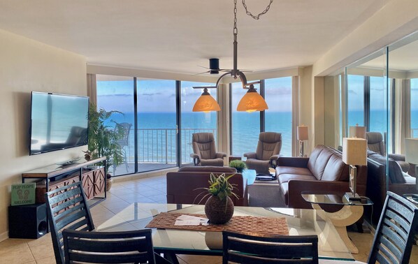 Indulge in breathtaking, unobstructed ocean views from this beautifully renovated 1240 sq. ft. condo, Unit 708 at One Ocean Place. Five panels of floor-to-ceiling sliding glass doors create a seamless connection to the pristine beachfront, offering an unparalleled vacation experience.