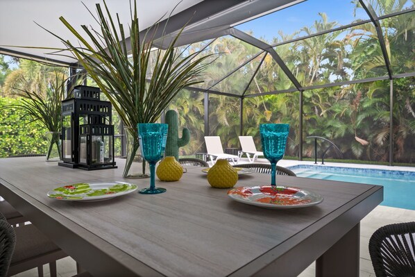 Escape to your own slice of paradise in this beautifully appointed Naples home featuring a sparkling private pool and secluded patio perfect for outdoor living. Located just minutes from Naples’ pristine beaches, fine dining, and boutique shopping, this residence offers the perfect blend of comfort, convenience, and Florida charm. Step inside to find bright, open living spaces with coastal-inspired décor, a fully equipped kitchen, and spacious bedrooms designed for relaxation. The master suite opens directly to the pool area, letting you wake up to palm-fringed sunshine every morning. Outside, unwind in the screened lanai, lounge by the heated pool, or enjoy alfresco dining in your private patio sanctuary surrounded by tropical landscaping. Whether you’re sipping morning coffee, grilling dinner, or soaking in the sunset, this home makes every day feel like a vacation. - BRAND NEW HEATED POOL & OUTDOOR LIVING SPACE! Guests can enjoy the pool or relax outside in the covered lanai and not worry about bugs. The home is located in the beautiful Palm River subdivision that is 10 minutes from Vanderbilt Beach. This 3 bedroom home with an additional 4th bedroom den is perfect for a family get away! Shopping and fine dining is also just minutes away.