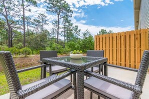 Escape to a boutique-style vacation home in Navarre, Florida, and experience the ultimate in comfort and style. With a shared pool just steps away, enjoy fun beach accessories and outdoor dining with a mini BBQ grill. This 3-bedroom townhouse boasts warm earthy tones creating a calm atmosphere throughout.