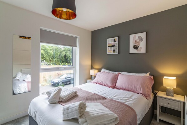 Prim Short Stays offers a modern haven for families and key workers. This 2-bedroom house features a fully equipped kitchen, comfy beds, flat screen TV with Netflix and free WiFi. With secure parking and supermarkets nearby, you'll feel at home in this self-contained accommodation.