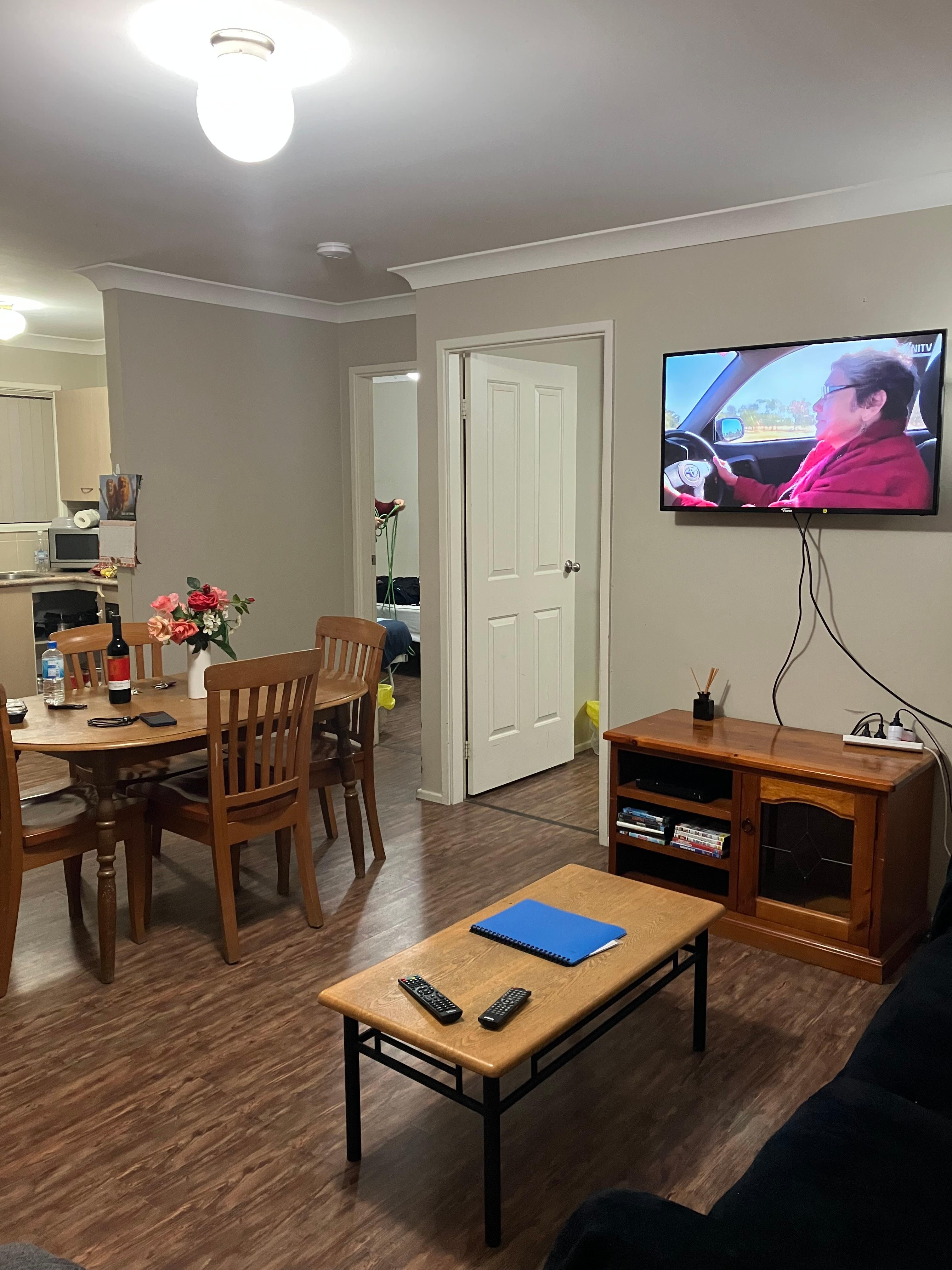 Accommodating up to 5 occupants plus an infant. Double bed and single bunk and foldaway bed. 81 DTV, DVD player, high chair and porta cot and baby bath included. Built-in robe in main. Great accommodation from one night for a single occupant to up to 5, university students, families or when you require long term.