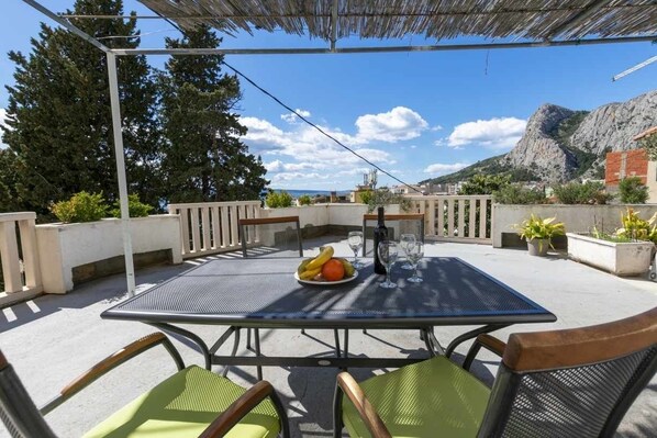 This holiday apartment is located in a traditional Dalmatian stone house in Omiš, just about 100 metres from the sandy beach and the city centre. From the terrace, you can enjoy a partial sea view and experience the bustling city life and the tranquillity of the surroundings at the same time. The house offers a total of ten apartments, each with a spacious terrace or loggia and a view of the sea and the surrounding islands.
