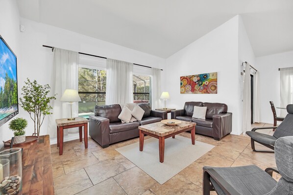 Unlike many Disney World rentals our home has two large living rooms and the villa has over 2400 square feet of total space plus an additional large game room. There is more than enough space to enjoy vacationing with your family yet still find some personal space for yourself when you want. This is the perfect location; close enough to Walt Disney World to make driving back and forth during the day and easy. Most families love taking an afternoon break at the villa and letting the kids swim and relax before heading back to Disney for a night of magic. But just far enough from the gate to make the rental costs not too pricey.