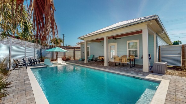 Just a short walk from the sugar-white sands of Panama City Beach, Coastal Coral Escape offers room for nine special guests to experience a tranquil oasis all their own! With a private (and optionally heated) pool right in your own backyard, this brand-new construction home is sure to satisfy! Park your car in the private driveway, drop your bags at the door, and splash the day away in the pool while the chef in the family whips up burgers for lunch on the provided gas grill. As if that wasn't enough, throw your beach towel over your shoulder and take a stroll through the serene Riviera Beach neighborhood right down to Sunnyside Beach, one of the most untouched beaches in all of Panama City Beach! You can even let your puppies play in the fenced backyard while you splash around in the pool!