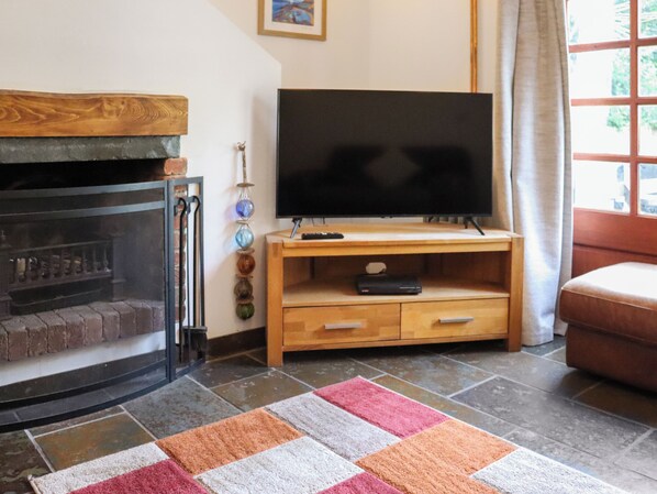Living room: Smart TV, Open Fire, Patio Doors Leading To Decking