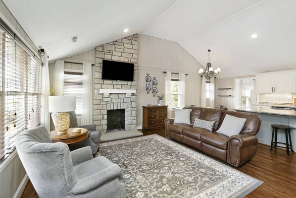 Spend peaceful afternoons on your private riverside deck, fish or kayak from the cottage, or enjoy tubing and wading right in your backyard. In the evenings, gather around the fire pit for s’mores under the stars. With two decks and plenty of outdoor seating, you’ll always have a perfect view of the water.