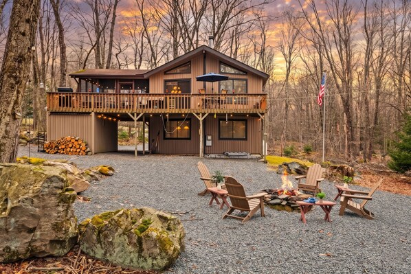 Welcome to Atlas Point Lodge, your serene Pocono Mountains getaway designed for comfort, connection, and a touch of indulgence. Tucked into a quiet wooded neighborhood just minutes from lakes, hiking trails, and year-round outdoor adventure, this charming three-bedroom home is the perfect base for families or friends looking to unplug and unwind.