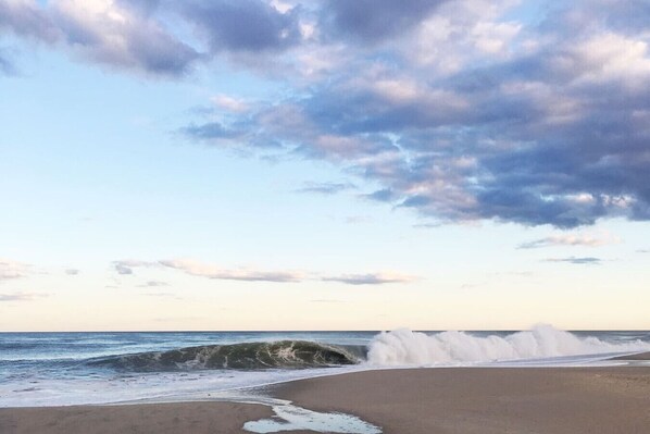 Our place is seven cottages away from the sand & boardwalk. We`ve done a FULL renovation to the studs on this 1934 cute duplex, with each private unit now at approx. 1,000 sq ft of living space & with heavy insulation between both units for noise reduction and increased privacy. Each unit has a private entrance. There’s a roomy private front porch where you can relax with coffee or a blended drink & catch the ocean breeze. We provide ALL the bed linens, towels and kitchen utensils, so all you need is your family and bathing suits. This unit is light and bright, with a roomy general living area to spend time in and watch TV. The place features three small, cozy bedrooms each with a full bed, dresser and luggage rack for your stuff. The beautiful, brand-new kitchen is ready for you to cook your heart out and features a cute table with seating for 4 surrounded by huge windows. New bathroom features narrow shower stall, sink, toilet and IN-unit laundry machines. ****New ductless AC/heat wall unit in main living area and all bedrooms***** & 200MBPS WiFi add to the comfort and convenience. The duplex features an off-street parking space for each unit or you can travel by train to the station just a mile away!