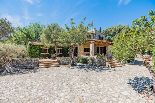 This pretty, charming property is set amongst the Pollensa countryside only a short drive from the old town. The gates at the entrance lead you along a private drive to this cottage style house.