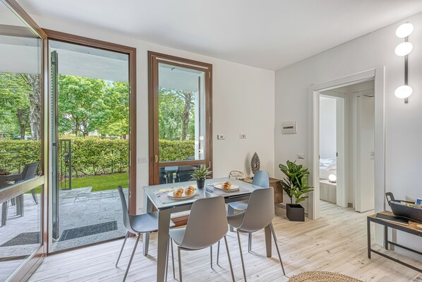 Located in Porlezza on Lake Lugano, the apartment is situated within the park of Porto Letizia. The family-friendly resort enjoys a lakeside public park with meandering footpaths and a communal beach with SUP and watersport hire, 2 children’s play areas and the main Palazzo building with on-site reception, a stylish café bar, Panama Italian restaurant and more.