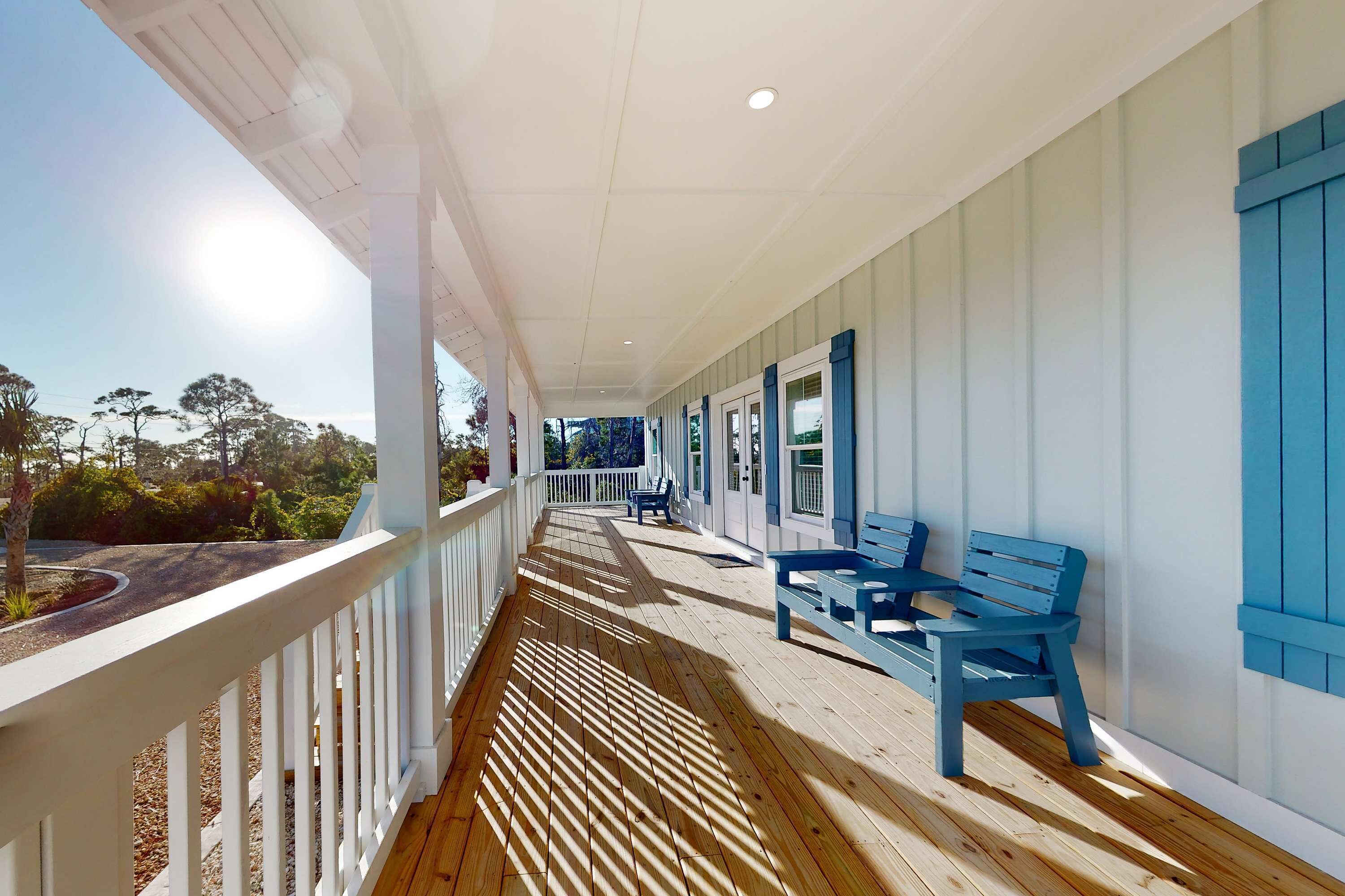 Welcome to Sunny Times on Cape San Blas, your perfect beachfront escape! Formerly known as St. Kitts, this breathtaking Gulf-front home offers unparalleled views of sugar-white sand beaches and unforgettable sunsets. Nestled in the highly sought-after Ocean Haven community on North Cape, it’s just a short bike ride or stroll along the scenic nine-mile Loggerhead Trail to St. Joseph State Park and local shops. With three expansive Gulf-front decks, a semi-private pool, and a $250 beach gear credit included, this home is designed for making lasting memories with family and friends. This spacious retreat accommodates up to 16 guests with six beautifully appointed bedrooms and five and a half bathrooms. Each bedroom features premium mattresses, ensuite baths, and large smart TVs for ultimate relaxation. An elevator provides easy access to all floors, and the gourmet kitchen is fully equipped for unforgettable meals together. New ownership has introduced high-end furnishings, modern finishes, and thoughtful amenities to enhance your stay. The home was freshly repainted in December 2022, ensuring a stylish and inviting atmosphere.