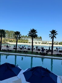 Fomos a primeira vez em casal e nos encantamos, menos de um mês depois voltamos com nosso filho para curtir alguns dias das férias. O hotel é excelente, com café da manhã delicioso e garçons extremamente atenciosos. Contudo, há falhas na comunicação sobre reservas e certa preferência por convidados e eventos em detrimento dos hóspedes. Atualmente, o hotel conta basicamente com duas atrações principais: a piscina de ondas e a aquecida. A de ondas é fria e o surfe é cobrado à parte (sessões a partir de R$ 960/hora), restando apenas a aquecida para quem busca descanso e lazer. Em nossa última visita, levando nosso filho para se divertir, só conseguimos aproveitar a piscina aquecida por um único dia, já que, sem aviso prévio na reserva, houve um evento da Amazon Prime que restringiu o uso da piscina aquecida por um dia e meio — metade da nossa estadia. Com isso, ficamos sem qualquer opção de lazer para nosso filho de 7 anos, que sequer podia utilizar a hidromassagem do spa com a gente por conta da idade. O mais frustrante foi que, ao questionarmos na véspera sobre eventos no hotel, fomos informados da interdição e até convidados a participar. Porém, no dia seguinte, ao tentarmos acessar o evento, foi nos avisado que o convite havia sido equivocado e que não poderíamos acessar o local, o que foi bem constrangedor. Inaceitável. Fotos anexas.