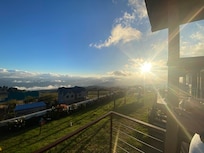 Property is up hill at about 8800ft elev. Great sunset view. Later clouds came in and filled the valley below. 4 front row buildings have best view. Others generally face other buildings. Not many windows to see out from room.
