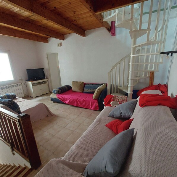 Une impression générale décevante. La qualité des literies plus que moyenne et l'absence de détails sur les conditions d'équipement nous à fait tarder de repartir. Il n'y avait pas d'air conditionné dans les chambres principales qui étaient aussi depourvues de rangement. Nos valises sont restées ouvertes deux nuits sans pouvoir être vidées. Et où sont les prises électriques? En 2025 avoir une seule prise par chambre est inconcevable. Que dire de la seule et minuscule salle d'eau avec ses toilettes? Nous nous sommes retrouvés un siècle plus tôt. Le plus grave est un problème de sécurité. La porte d'entrée ne ferme pas sans mettre un tour de clef. Vous sortez de cette location et devez toujours demander à ce que quelqu'un présent ferme derrière vous afin d'éviter une fugue d'un enfant. Une honte.Je déconseille ainsi que mes amis de venir dans ce logement obsolète, inconfortable et dangereux.