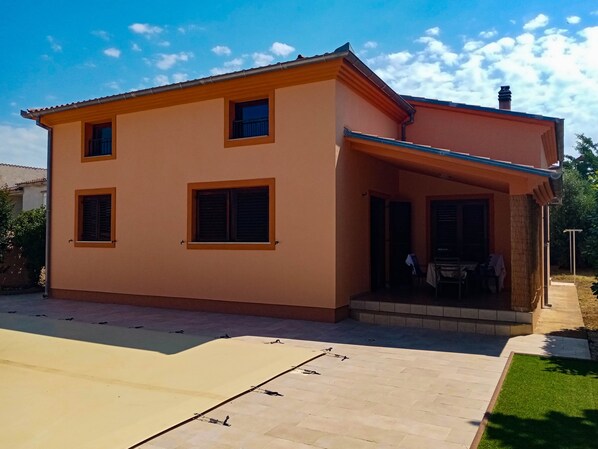 Not far from Pula city, this spacious house offers a refreshing retreat with a BBQ and pool. Prepare food on the fire in the summer kitchen or simply enjoy each other's company under its roof.