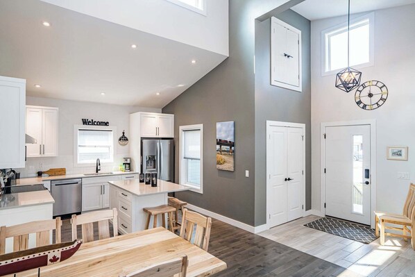 The fully equipped kitchen invites you to showcase your culinary skills, complete with modern appliances and all the essentials you need. Whip up hearty breakfasts, pack energizing lunches, or create memorable dinners to share with your loved ones around the dining table.