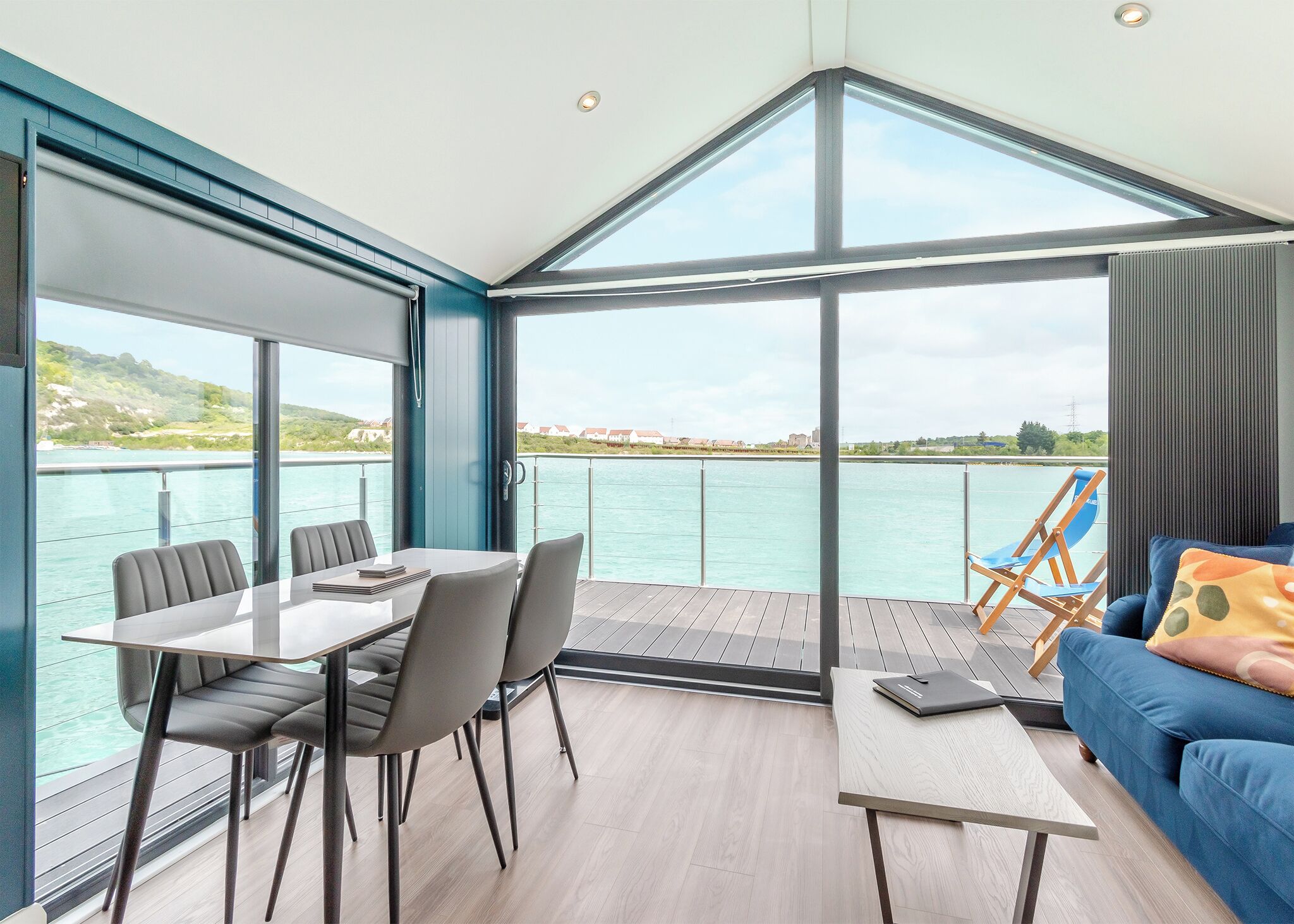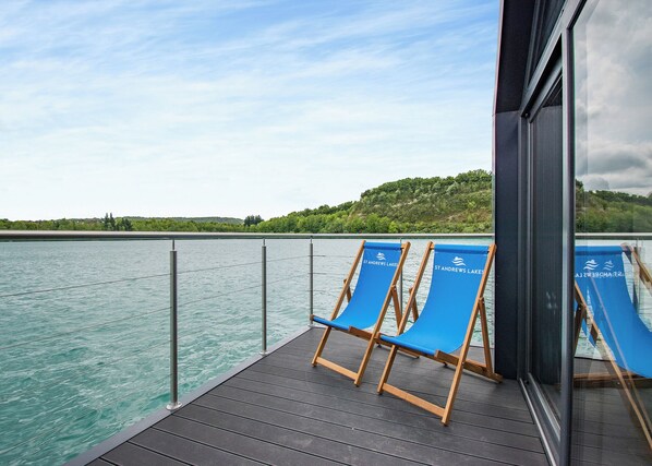 The Waterside floating lodge is a wonderful addition to St Andrews Lakes and provides the ultimate holiday retreat. This luxurious and contemporary lodge has been designed to maximise an on-water experience and delivers on all the amenities expected in today’s modern world.