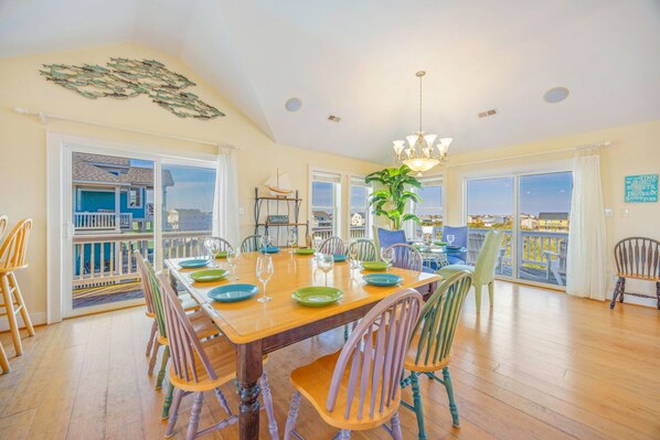 OCEANVIEW Rodanthe - Hatteras Island Estates - It’s JAMAICAN ME HAPPY just describing this home to you. It will be JAMAICAN you HAPPY to vacation in it! The fun begins as soon as you arrive and escape to the outdoor entertaining area featuring private swimming pool with adjacent kiddie pool, relaxing 6-person hot tub, outdoor eating area and enclosed outdoor shower. Three levels of wraparound decks provide lots of space to kick back in the shade and the sun. Inside the home, you are greeted by the expansive game room with pool table, foosball, poker/game table, shuffleboard, 3 large screen Smart TVs and a wet bar with refrigerator, microwave and dishwasher. A half bath is convenient for the game room and quick trips in from the pool. Also on this level is a master bedroom with private bath and pyramid bunk with trundle is a great room for the kids. The second level of the home offers 4 king master bedrooms each with Smart TVs and private baths, and the laundry room. The top level great room can’t help but make you happy with its spacious layout and vaulted ceilings making your group feel at home. Comfortable seating surrounds the home theater system with a half bath conveniently nearby. The two dining tables along with seating at the breakfast bar accommodates everyone, and the fully equipped kitchen has all you need to prepare the day’s meals. The top level king master suite boasts a tile shower in the private bath and offers access to the wrap around deck with views of both the ocean and the sound. Head on down to the islands for a vacation to remember at JAMAICAN ME HAPPY.