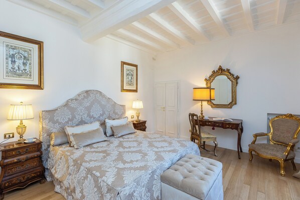 The apartment is accessed through a private courtyard and via a small lift that reaches directly into the apartment, on the third floor.