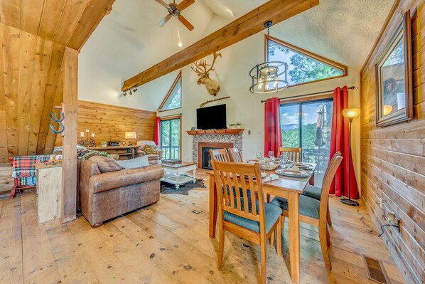 Nestled among towering pines, this charming 2-bedroom, 2-bath vacation rental is the perfect retreat! Start your mornings with coffee on the deck while taking in the stunning view, then spend your day hitting the slopes at Ski Apache, testing your luck at Billy the Kid Casino, or exploring nature at Lincoln National Forest. After your adventures, return to the cozy cabin to unwind by the fireplace. With its rustic charm and prime location, this is the ideal choice for your Ruidoso getaway!