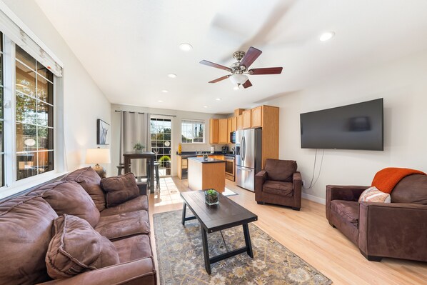 Escape to this peaceful retreat near Sonoma and Calistoga, where you can unwind in the hot tub or doze off in the hammock by the warm fire pit. This charming guest house offers a fully stocked kitchen, sofa bed for extra sleeping space, WiFi for staying connected, driveway parking and street parking options.