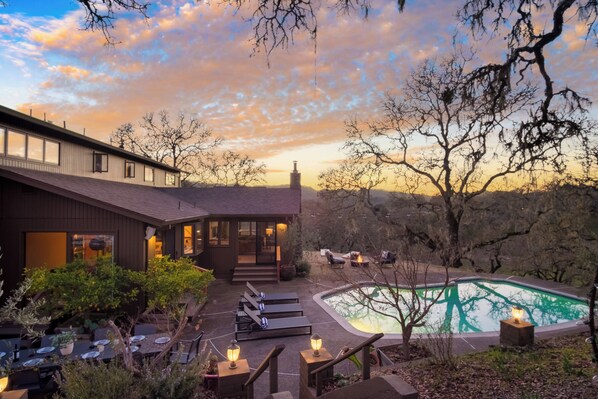 Welcome to your wine country oasis that sits on 3.5 acres of nature and beauty. Sip on a glass of pinot as you lay back in the steamy spa while taking in the picturesque views of the sun-kissed vine-covered hills of Santa Rosa. This grand residence flaunts a stone wall fireplace, wood finishes, tall windows that engulf the home with natural light, and an extensive patio that allows you to host a wine tasting of your own. Spend days lounging poolside or taking in the natural beauty that encompasses your estate.