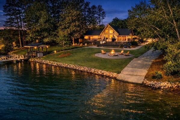 Life is better at the Lake! Bring your boat & make memories with family and friends at this dreamy and luxurious home on pristine Lake Keowee. Privately nestled directly on shore, this house includes your own private boat ramp and dock, lakeside gazebo, outdoor grilling deck, and an epic firepit for smores with a view. The open concept with vaulted ceiling feels spacious and airy, and the two main floor bedrooms and separate 4-bed loft provide plenty of sleeping space for children and friends.