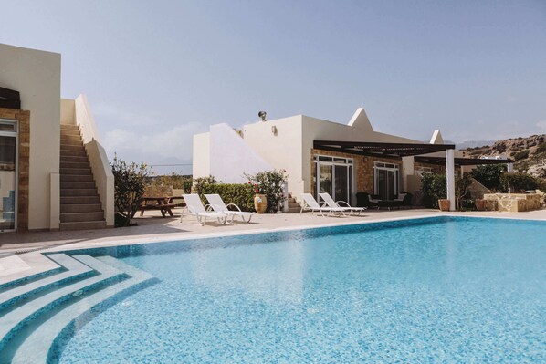 The complex has two large communal pools with sun loungers, perfect for a family holiday, romantic break or relaxing getaway. Sitting on the private terrace in the evening, with a book and a glass of wine is just perfect.