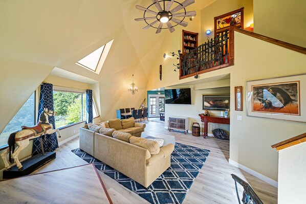Embrace the tranquility of our surroundings as deer and other wildlife freely roam the property, providing a serene backdrop for your stay. Ample off-street parking ensures hassle-free arrivals, while evenings are best spent gathered around the propane fire pit, toasting marshmallows, and savoring the captivating views.