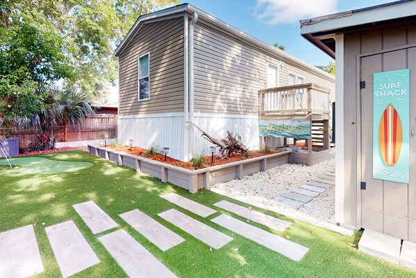 Great property with lots of extras to enhance visit. Very clean, well maintained, mobile home stocked with most everything needed. There was ground coffee with creamer, salt and sugar with a well appointed kitchen. Soap, shampoo, laundry detergent and dish soap. Plenty of pots, pans, dishes, and silverware. Lots of nice pillows and throw blankets, but the couch was not very comfortable when sitting for much time at all. Had other chairs somewhat more comfortable. The kayaks were tremendous and had a great time on the Weeki Watchie river. Saw lots of wildlife; large variety of fish, turtles (sea &box), a blue crab and an owl as well as many other birds. Did not see any manatee as was hoping. Nice firepit (& provided firewood), patio table with very comfortable chairs and nice space to relax. Darts and putting green (although this was too small to entertain for very long) and cornhole bags, but could not find any cornhole bases to throw to. We plan to be back.