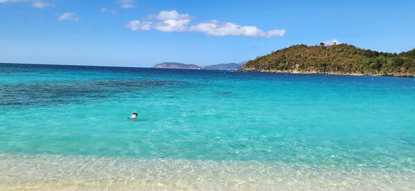 Our family stayed 8 nights at Elysium & enjoyed every moment of our stay. My husband and two boys, ages 16 & 19, used the trail to Fish Bay to fly fish every morning & evening. While they fished in the early morning, I swam laps in the pool, prepared breakfast in the well-stocked kitchen & readied materials for our afternoons of swimming & snorkeling at different North Shore beaches. (The cays at Trunk Bay & Cinnamon Bay, & Waterlemon Cay were our favorite snorkeling spots). We ended many evenings swimming in the private pool. The property has beach chairs & coolers for guests to use. Since some beaches are more secluded & without amenities, having coolers to pack food & drinks for the day was helpful. This property is high on a hill with breathtaking views. Fish Bay is murkier than those on the North Shore. However, my husband & kids felt safe wading knee to waist deep in the water to fly fish & weren't bothered by any little sharks they came into contact with. They wish they would have brought a steel liter. Any sharks they did catch sliced right through their lines (and there aren't any bait & tackle shops, so bring what you need from home). Mary Creek was another favorite fishing spot. To find the trail to Fish Bay, walk down the driveway & continue down the street. The entry to the unmarked trail is across the street from one of the first houses on the right. The trail and the beach are really rocky, so closed-toe hiking sandals would work better than flip-flops.