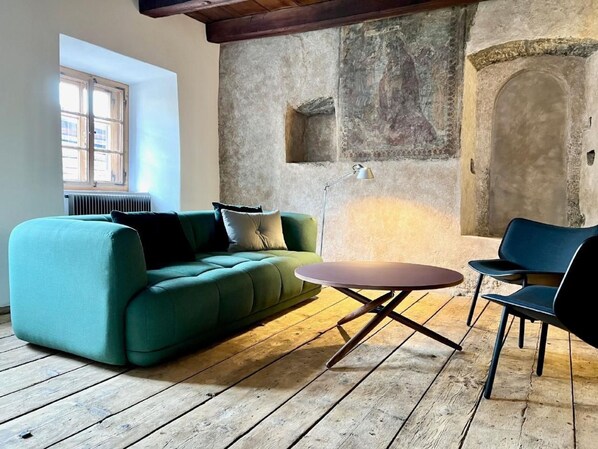 The Tgesa Caminada is a historic house, a listed building. Although it is technically equipped to modern standards, we would like to point out that certain functional details such as window and door openers, stair handrails and step heights do not comply with current standards and could be a potential source of danger. The staircase from the 2nd to the 3rd floor is very steep, but has a handrail. Use at your own risk. The tenant is aware of these circumstances. The owner, e-domizil and the Vacation in architectural monument foundation disclaim any liability.
