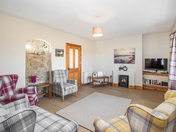 Living room: 32" TV, Sky Family, DVD Player, Electric Woodburner