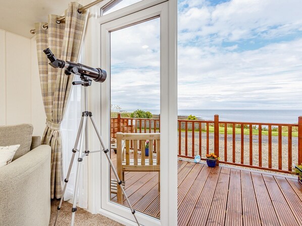 This detached lodge with sea views is ideal for exploring the coast or just relaxing in beautiful surroundings.. 1 step to entrance.