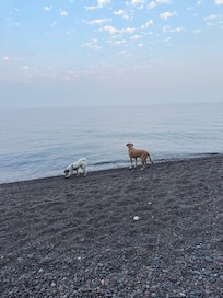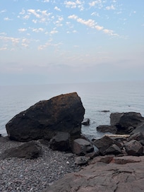 Guests are sure to enjoy a memorable vacation in this fully furnished, 3 bedroom/3 bath residence and it has a (seasonal )nice staircase to a beautiful pebble beach on Superior .The main bedroom has a king-sized bed, while the remaining rooms are furnished with a two queens and full-sized bed, comfortable for sleeping 8 people. The stunning living room is furnished with couches and a fireplace for your enjoyment.
