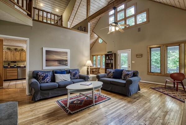 Nestled in the heart of the Smoky Mountains, Berg Stuga (meaning "Mountain Cabin") is a luxurious 4-bedroom, 4.5-bathroom chalet offering breathtaking year-round mountain views from its upper deck. Perfectly situated between Wears Valley and Townsend, this secluded retreat combines modern comforts with stunning natural beauty for an unforgettable vacation.