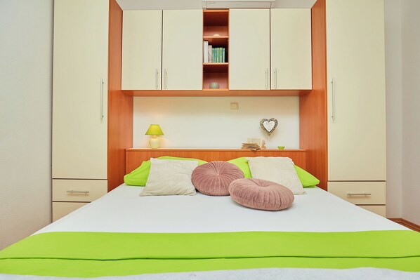 Escape to the Makarska Riviera in this lovely studio apartment with balcony and partial sea views. Unwind in the comfortable queen size bed, well equipped kitchenette, or stroll a few minutes to the 4 kilometers long white pebble beach. This Tucepi retreat offers AC, free WiFi, flat screen TV and private parking.