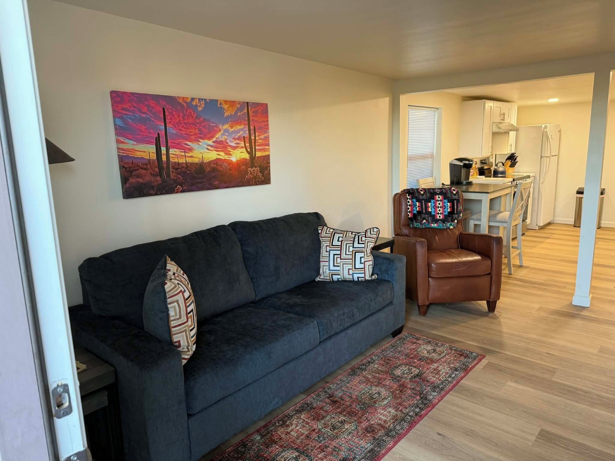 The Loop, Saguaro National Park, and Dove Mountain Resort are just a few of the nearby attractions waiting to be discovered when you make this home your choice for a family holiday. Nestled in Marana's San Lucas community, this private home offers equal parts comfort and convenience. While you'll enjoy easy access to I-10, this family-friendly neighborhood boasts multiple parks, green spaces, and walking trails away from cars and traffic. The home's private backyard is beautifully landscaped and includes a shady patio area furnished for outdoor leisure. Updated sofas, a fireplace insert, and a smart TV set the stage for casual gatherings in the living room. The open-concept, eat-in kitchen is designed to be a centerpiece for hosting and home entertainment. The primary suite includes a large private bathroom, a walk-in closet, and direct patio access.