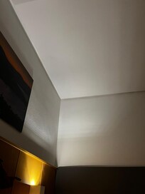 Room smelled strange, walls in bedroom + bathroom showed water damage?